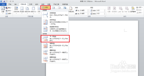 3.首先点击“分隔符”选项,然后再点击“下一页”,插入一个分隔符。