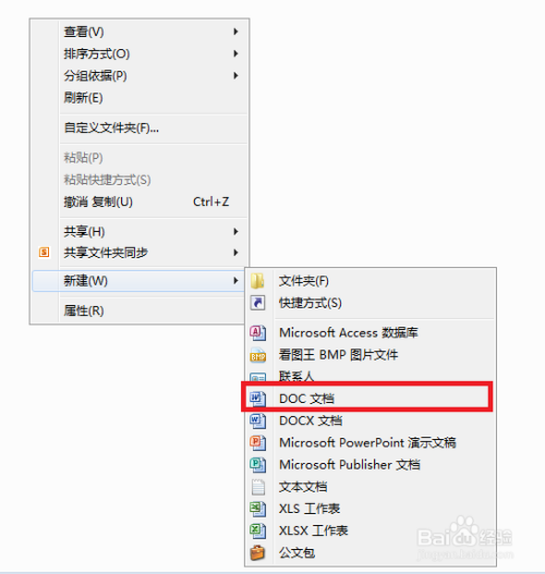 1.点击鼠标右键,新建一个“Word”文件。