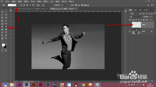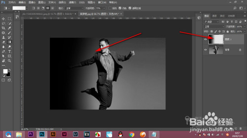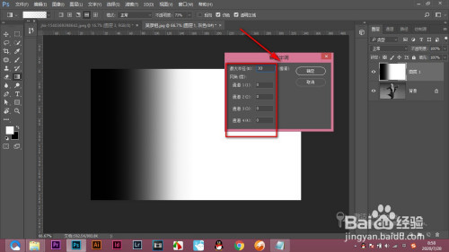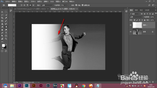 2.新建一个空白图层,点击渐变东西,选择白色到透明的渐变。