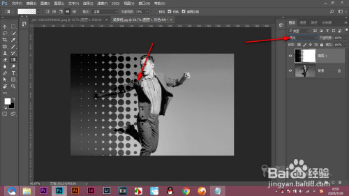 7.然后利用图层夹杂模式——柔光去白留黑,这个时辰就是一种波尔卡圆点的过渡结果,为了增强结果,可以将这些圆点的大小变小,在彩色半调中设置半径就可以了。