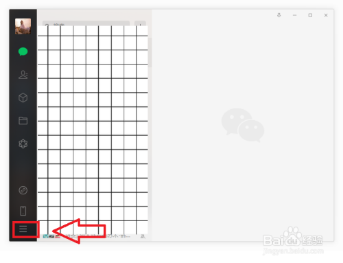 1.打开电脑版微信,然后点击左下角的“三”。