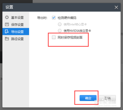 第五步打消勾选(导出时)同时保留视频封面并点击确定保留。