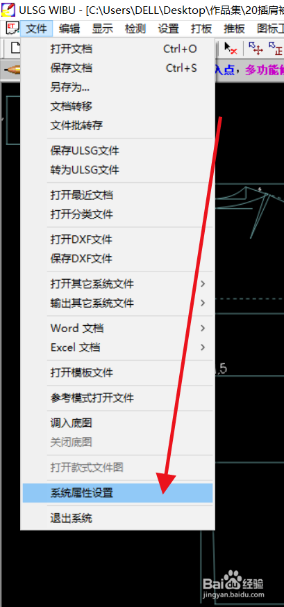 在“文件”功能中点击“系统属性设置”。