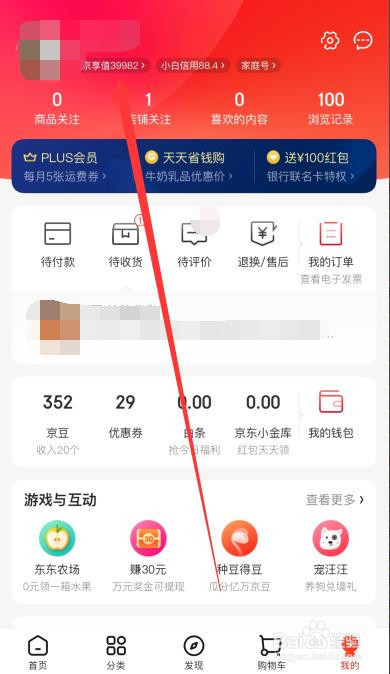 点击小我头像下方的【京享值】