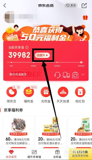 点击京享值后面的【去晋升】