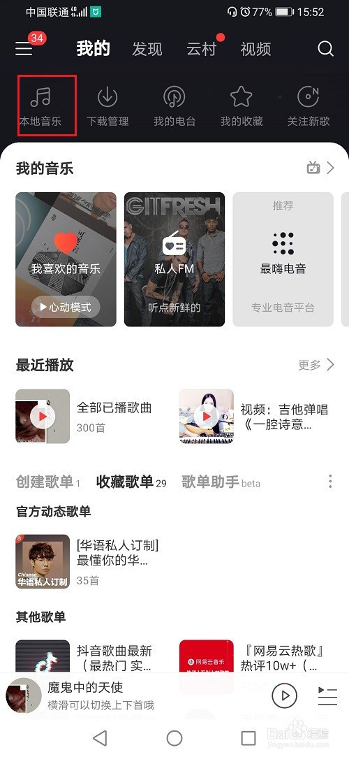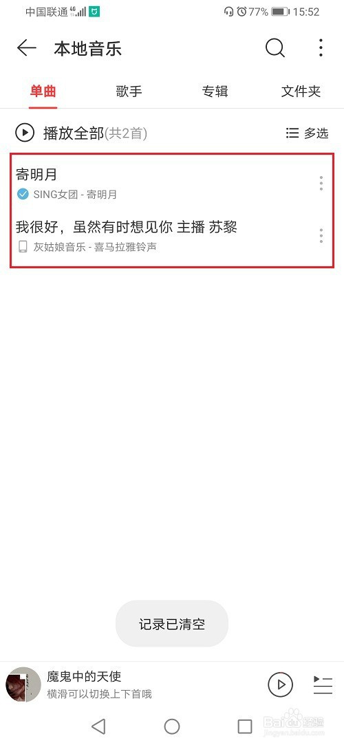 第二步在当地音乐中,进行扫描当地歌曲,可以看到已经导入当地歌曲了