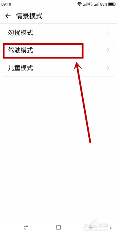 3、在【情景模式】页面,选择【驾驶模式】点击
