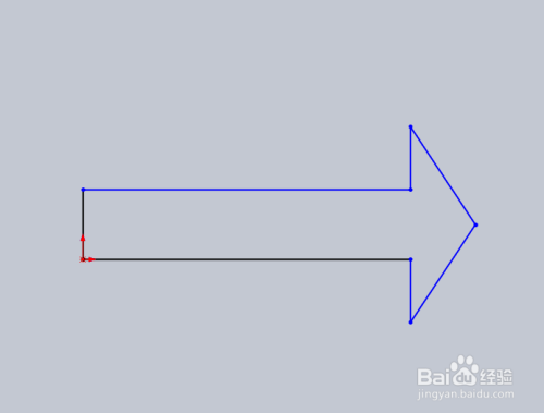 用草图号令里面的直线,绘制出一个如图所示的箭头草图。