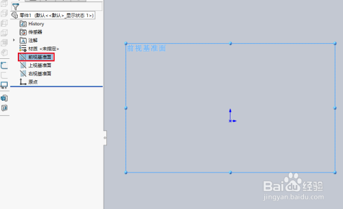进入到一个新的零件界面,这时辰选择前视基准面为画图平面。