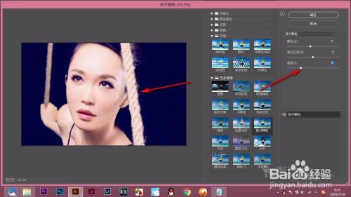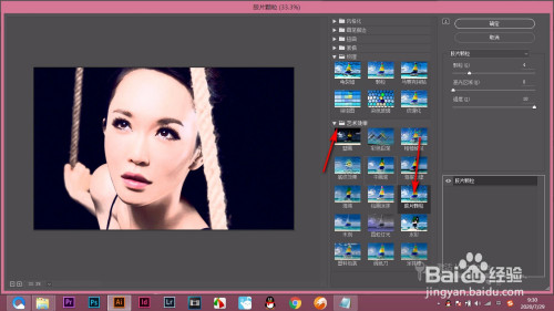 2.在艺术结果栏中找到并点击——胶片颗粒选项,发现画面多了一些转变。