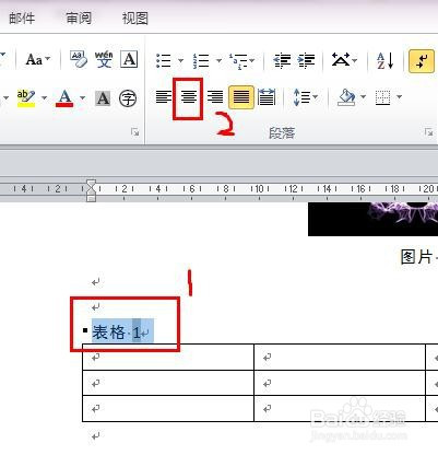 若是需要表题居中,选择“表格1”,再点击“居中”即可,如图所示。