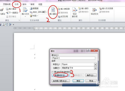 选择第一张需要添加题注的图片,依次点击“引用-插入题注-新建标签”