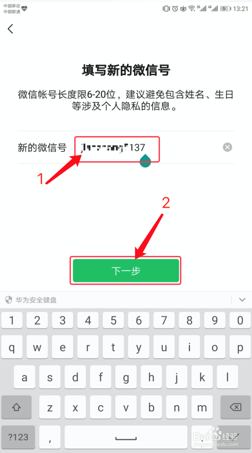验证经由过程后,填写新的微旌旗灯号后,点击【下一步】,如下图所示。