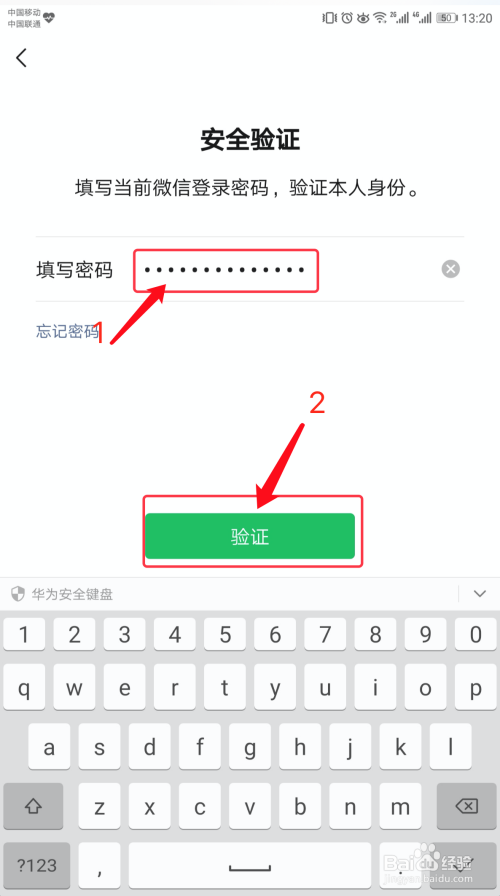 输入微旌旗灯号登录密码后,点击【验证】,如下图所示。
