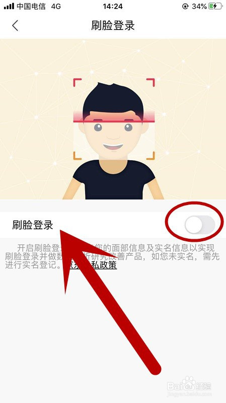 6、按照提醒选择刷脸登录开启,即可完当作设置。