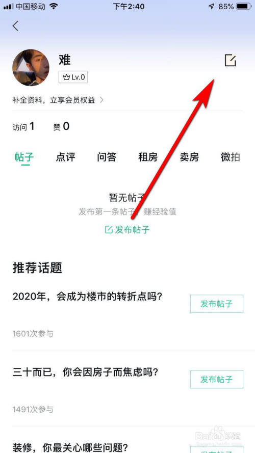 在我的页面中,点击右上角的小我信息,如下图箭头所指位置。