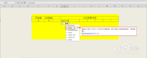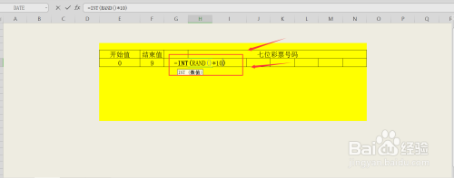 领会完函数的利用方式后,我们补全公式=INT(RAND()*10),即为在0-9数字规模内,生当作7位整数随机数;