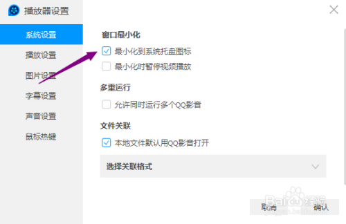 之后点击打消失落最小化到系统托盘图标的勾选。