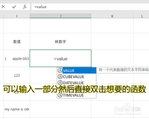 首先打开一个Excel或者WPS表格,选中一个单位格并双击,输入“=VALUE”然后双击第一个提醒VALUE