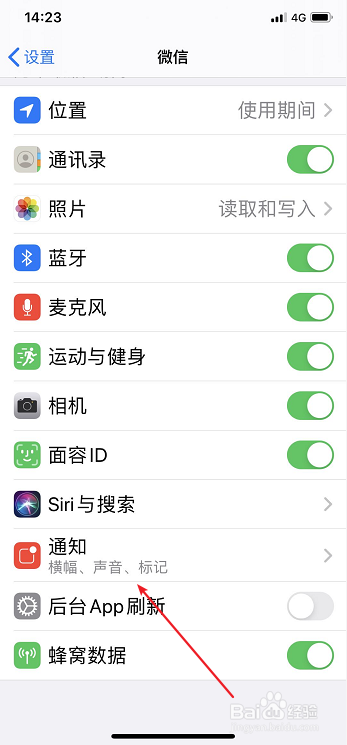 4、点击【通知】