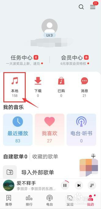 点击【当地】音乐。