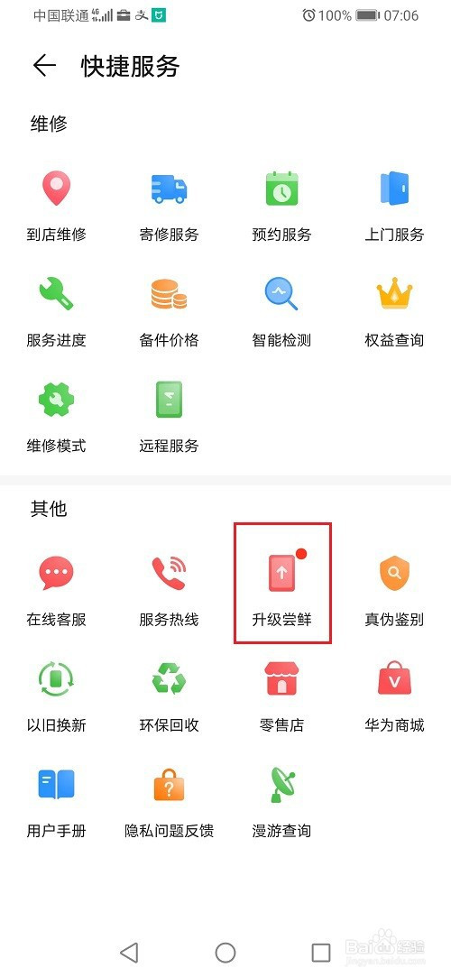 第三步在快捷办事中,点击进级尝鲜