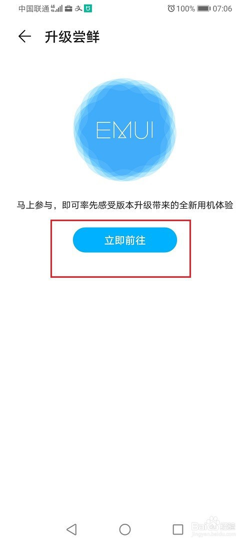 第四步进去华为手机进级尝鲜界面之后,可以看到内测系统版本,点击当即前去