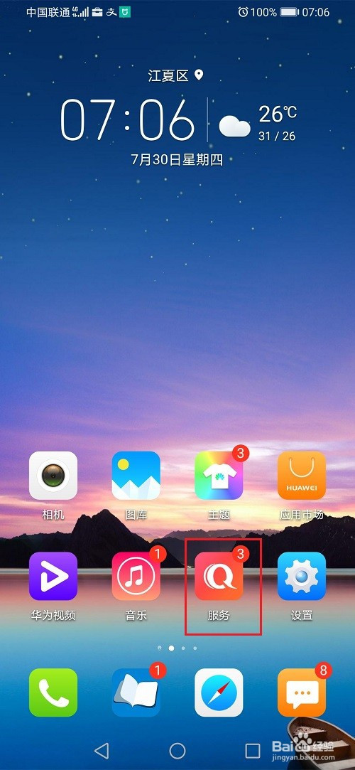 第一步打开华为手机,点击办事