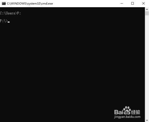 因为适才的文件放在F盘下面,所以在号令行窗口输入F: 再按回车,可切换到F盘,若是放在D盘的话,就输入D: 再按回车。