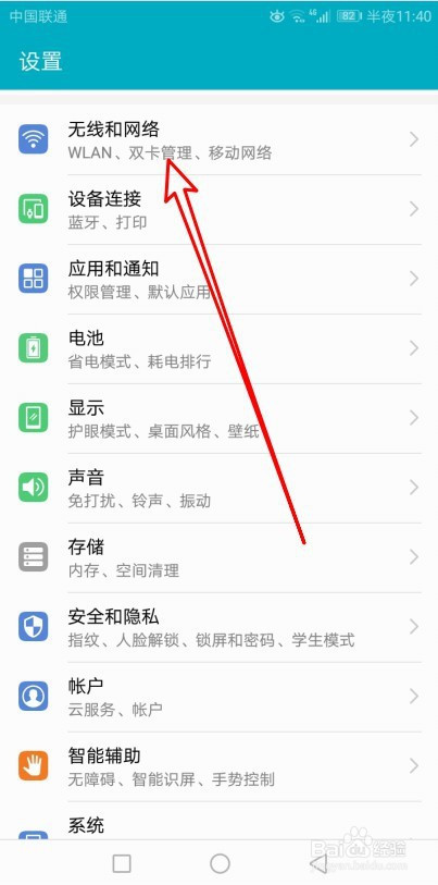 然后再打开到华为手机设置页面,点击无线和收集的菜单。