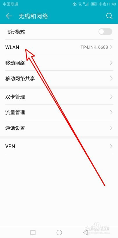 接下来再打开的无线和收集页面,点击wlan的设置项。