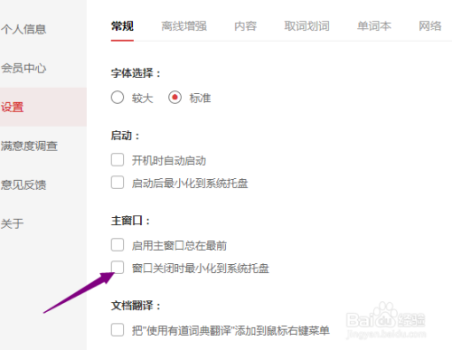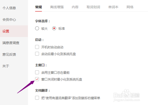 然后点击勾选上窗口封闭时最小化到托盘。