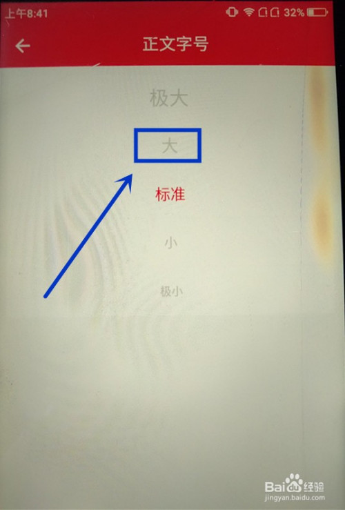 进入【正文字号】页面,选择需要的字号,好比【大】