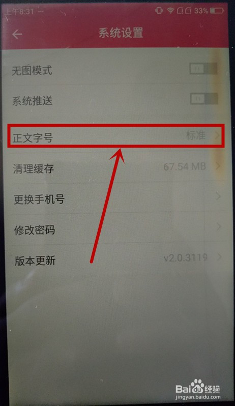 在【系统设置】页面,找到【正文字号】按钮点击