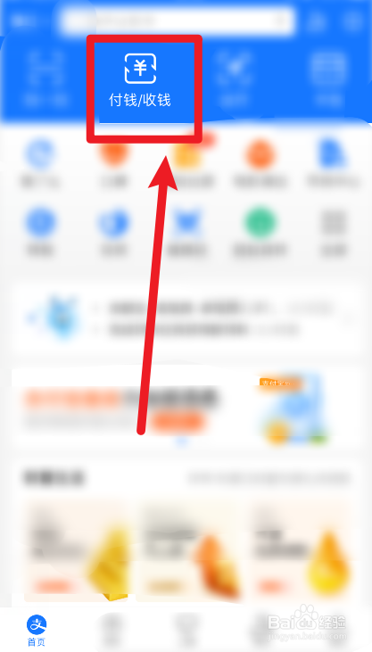 然后点击支付宝软件首页的【付钱/收钱】选项,开启支付宝公交车优惠。