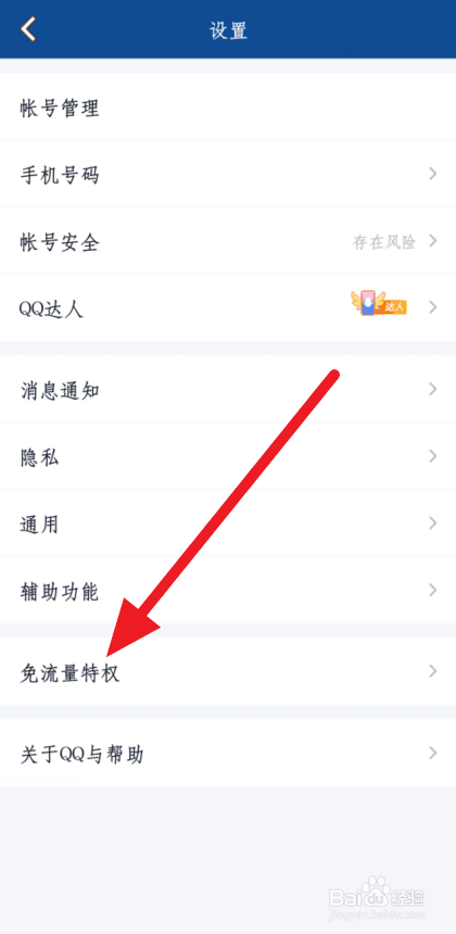 进入应用设置页面,点击免流量特权。