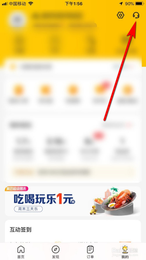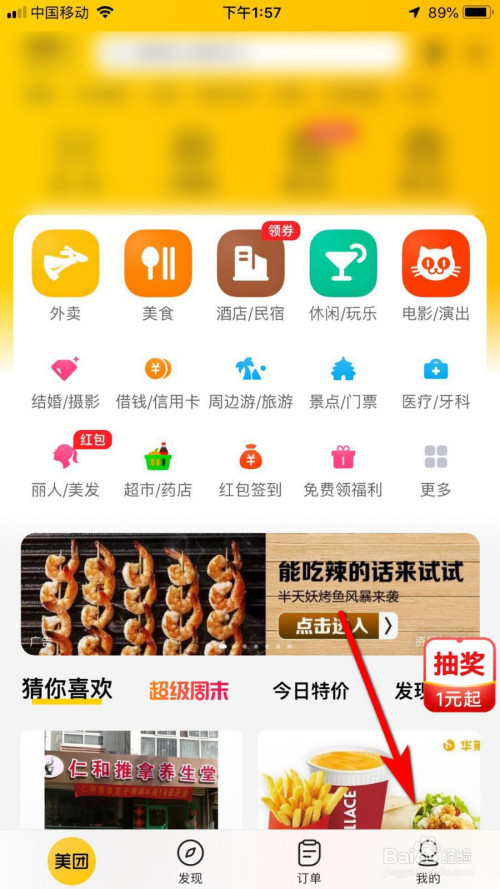 进入美团首页面后,找到右下角我的菜单,点击进入我的菜单页面。