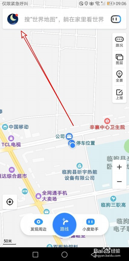 在打开到百度地图软件本家儿界面,点击左上角的小我中间按钮。