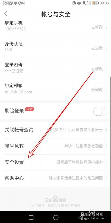 接下来再打开的账号与平安页面,点击平安设置的菜单。