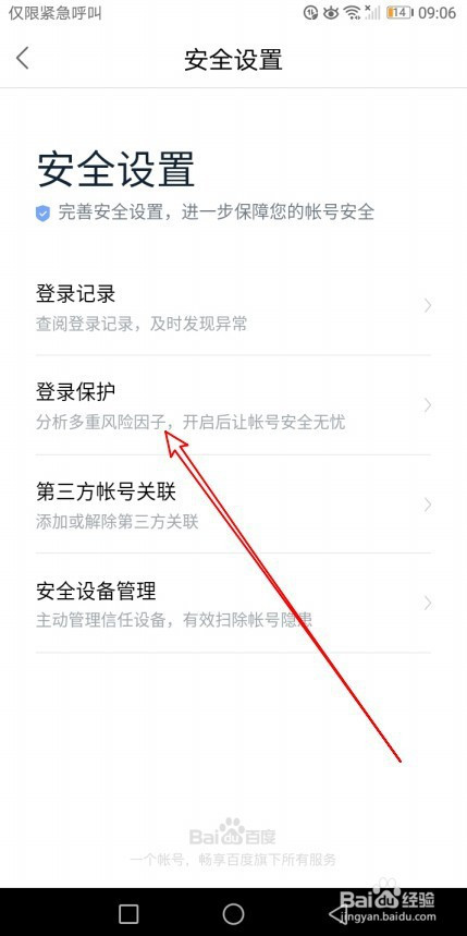 然后在平安设置页面点击登录庇护的快捷链接。