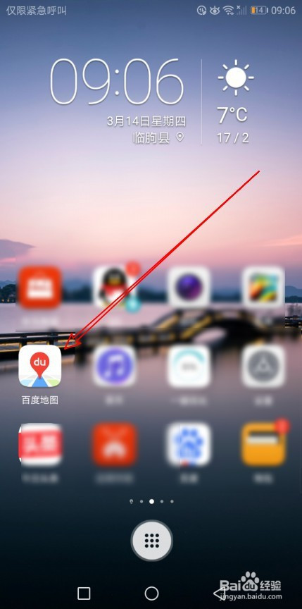 首先点击手机屏幕上的百度地图图标。