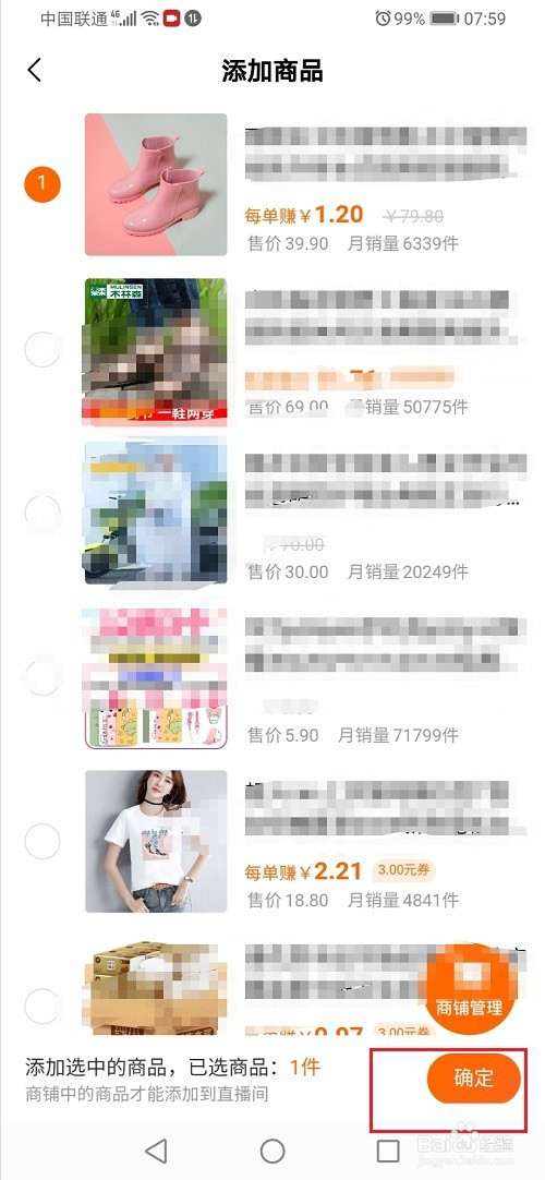 第四步进去之后,进行添加商品,点击确定,如下图所示:
