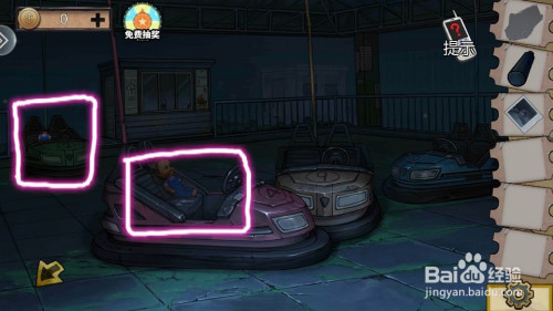 可以看到此中一碰碰车上有一个玩偶,用碎玻璃划破拿到钥匙,最左侧还可以拿到玩偶头。这里注重记住碰碰车颜色对应数字