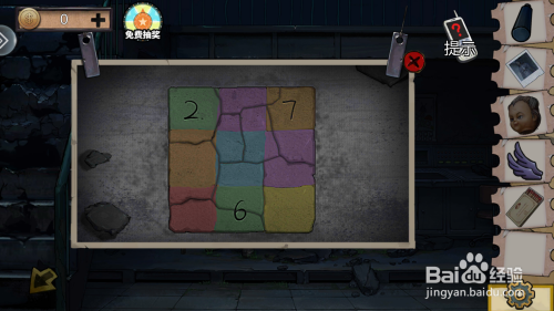 注重:在绿色碰碰车右侧有一个售票厅一样的小房子,打开门,会失落出一个箱子和游戏板,而这个游戏关头在于之前锁头关卡时玩过的拼图游戏,之后加起来等于后边的数字就打开了,获得圆形发光物