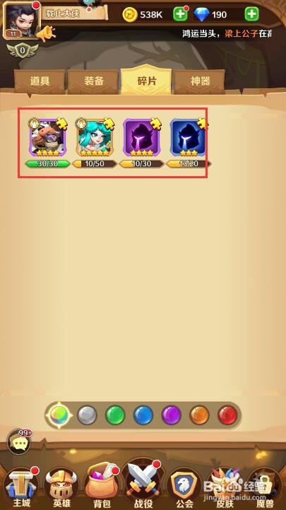 在游戏中收集必然数目的英雄碎片也可以合当作英雄。