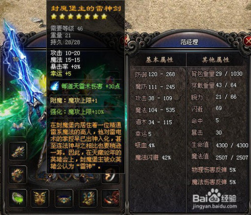 进犯10-10、魔法3-3、道术3-3,根基属性较低,游戏的开辟者就是用这条附加破防属性来吸引玩家,在现实的利用傍边,也就是那样,和"封魔堡本家儿的雷神剑”真的没有什么太大区别,从这就可以看出游戏开辟者在各类兵器上所做的一个均衡,不克不及一边倒。