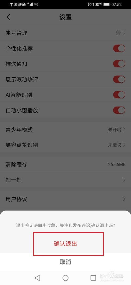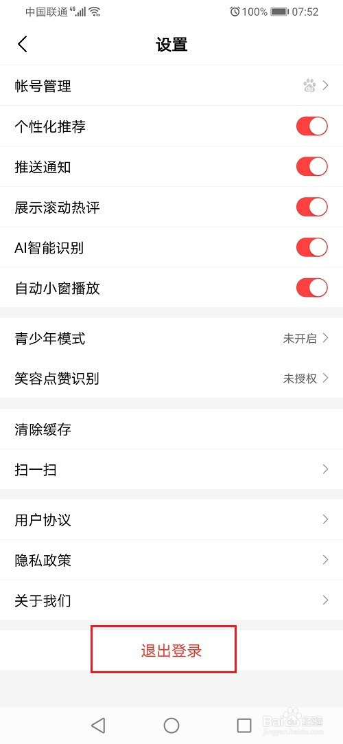 第二步进去都雅视频设置之后,点击退出登录,如下图所示: