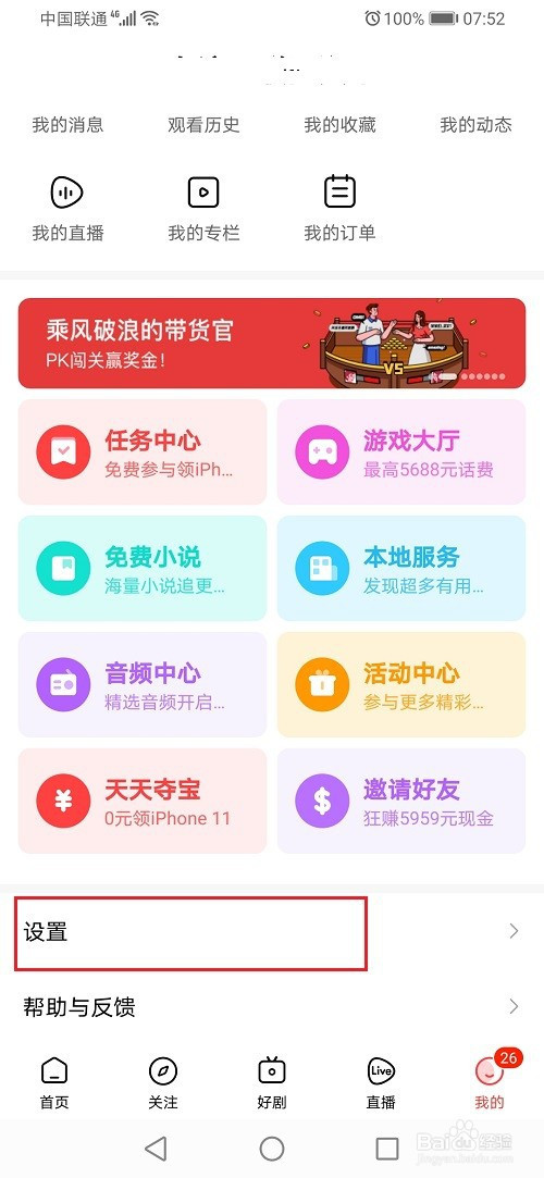 第一步进去都雅视频我的界面,点击设置,如下图所示:
