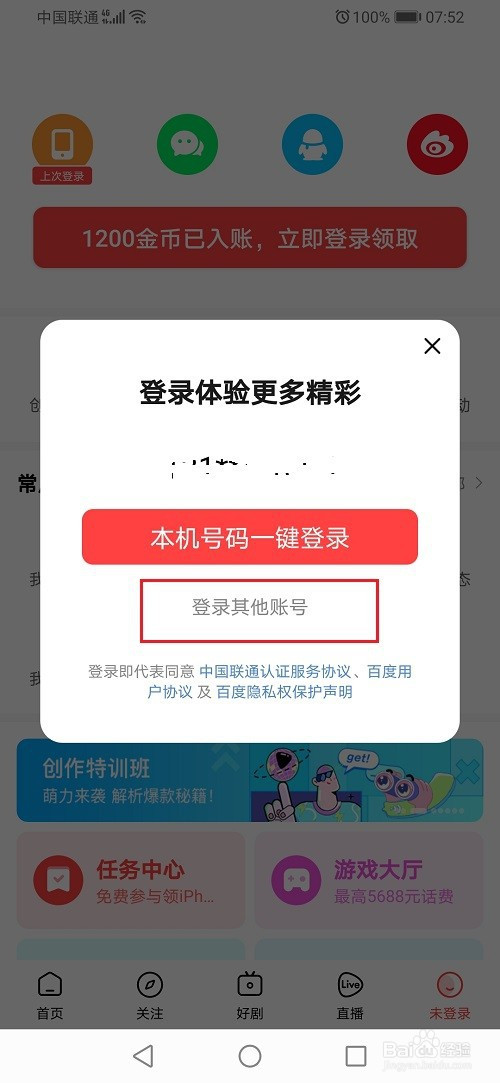 第四步都雅视频退出账号之后,点击登录其他账号,如下图所示: