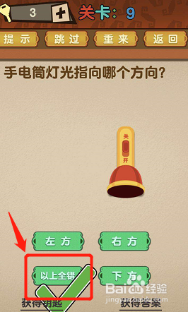 第9关:手电筒灯光指标的目的哪个偏向?选择【以上全错】,因为手电筒并未打开